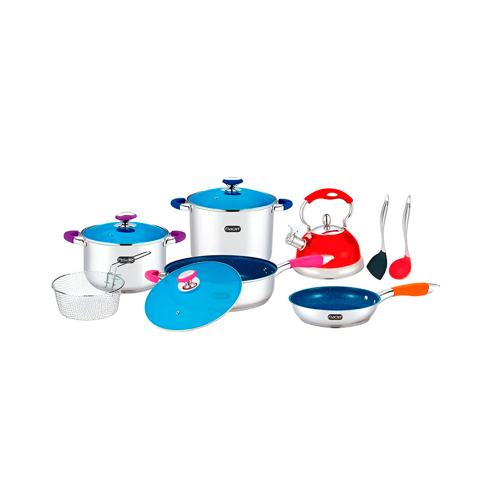 Enjoy the unique cooking experience with the Florida 13 Piece Set - Fraciel, made with the highest quality stainless steel to guarantee durable use. This kitchen set is a step towards a modern and refined lifestyle, with all the necessary tools to prepare and enjoy the best dishes.