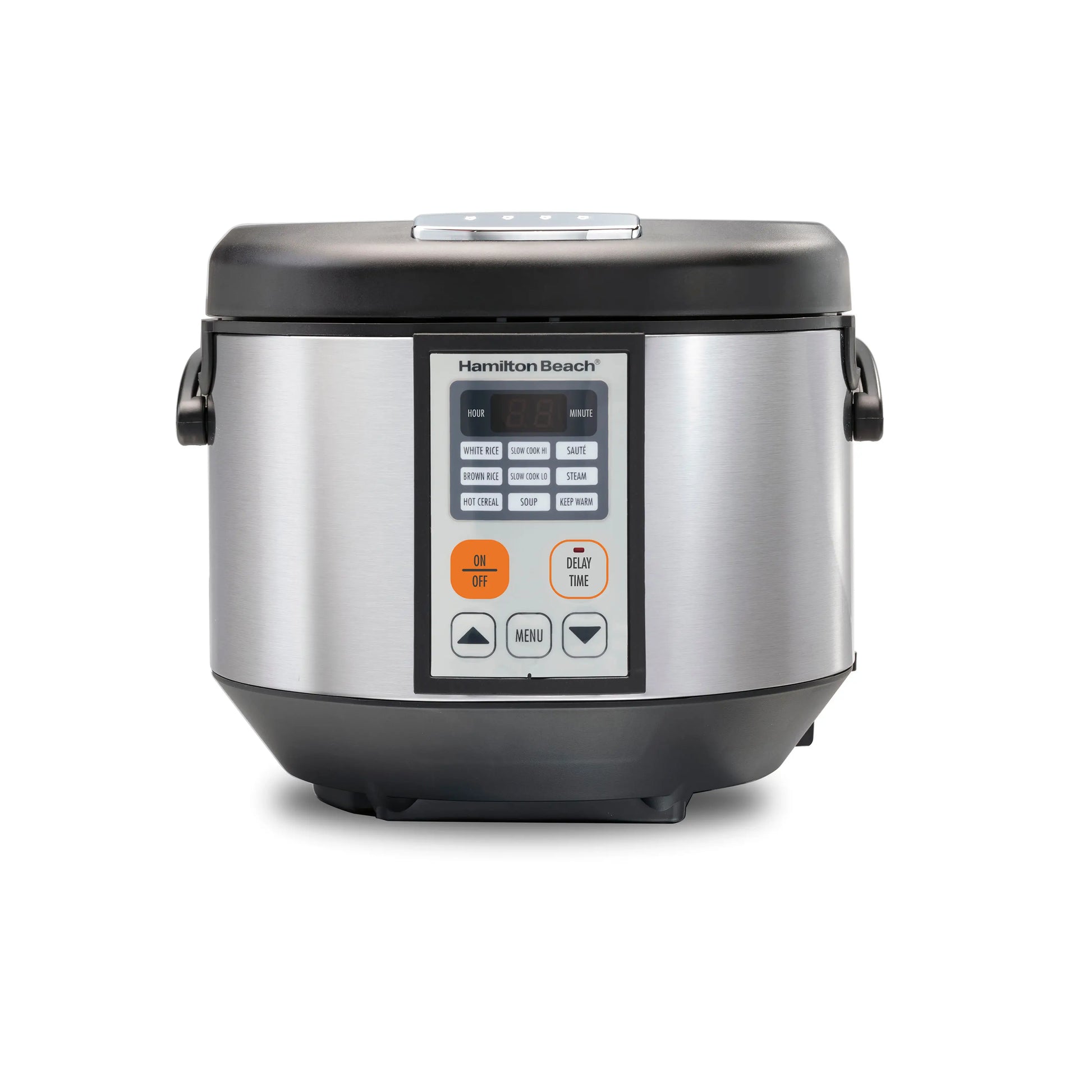 La Hamilton Beach® Cocedora de Usos Múltiples Digital es el electrodoméstico 7 en 1 que transforma tu cocina. Con una capacidad de 4.3 L y funciones diseñadas para facilitar tu día a día, este multicooker combina en un solo equipo: arrocera, cocción lenta, vaporera, salteado, preparación de sopas, cereales calientes y más.