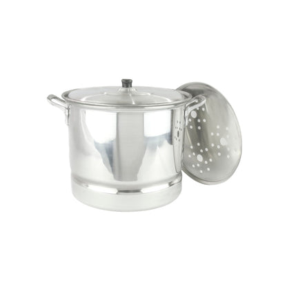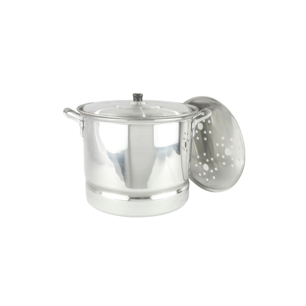 Exquisita vaporera de aluminio de 30cm y capacidad de 19L, diseñada por El Abuelo. Permite cocinar al vapor de manera saludable y eficiente, manteniendo todos los nutrientes y sabor de tus alimentos. Disfruta de una cocina más saludable con la Vaporera El Abuelo!