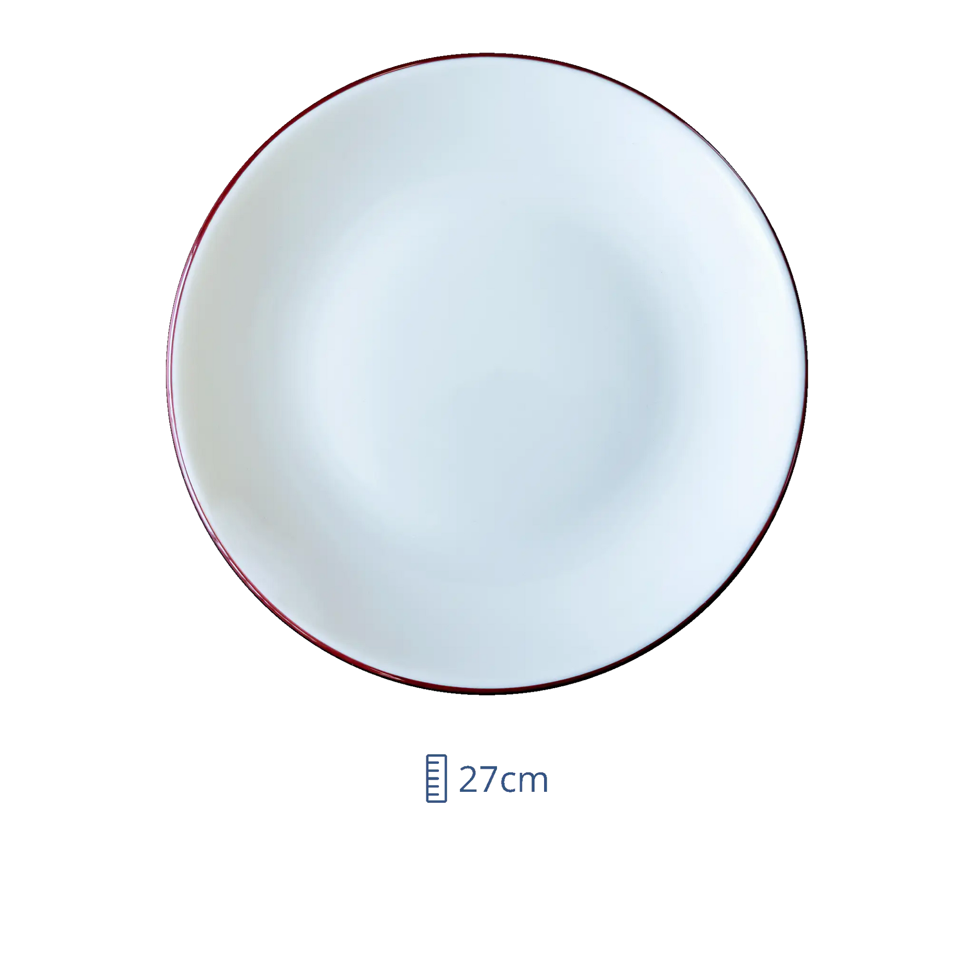 El Plato Llano de Porcelana en color blanco de la Colección Linea Burgundy ofrece un diseño sofisticado con un estilo minimalista que se adapta a cualquier ocasión. Su borde sutil y acabado impecable recuerdan la delicadeza de un lienzo, brindando a chefs y amantes de la gastronomía la posibilidad de presentar cada platillo como una obra de arte.