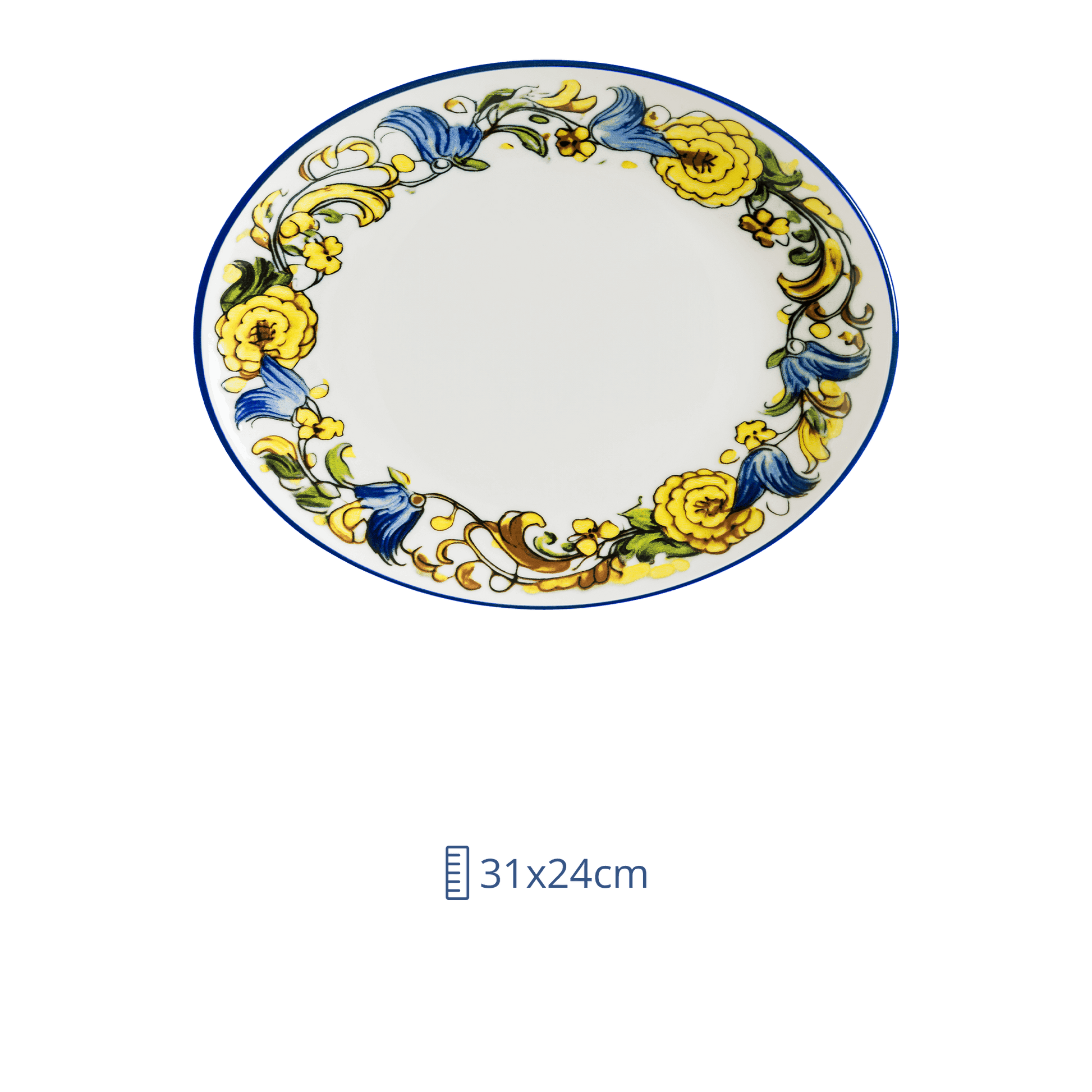 El Plato Ovalado Albufera Blanco Medio 31x24 cm es una pieza versátil y elegante, ideal para realzar las presentaciones en restaurantes, hoteles y servicios de catering. Inspirado en la tradicional porcelana siciliana pintada a mano, la colección Albufera transmite la esencia mediterránea con un estilo sobrio y sofisticado