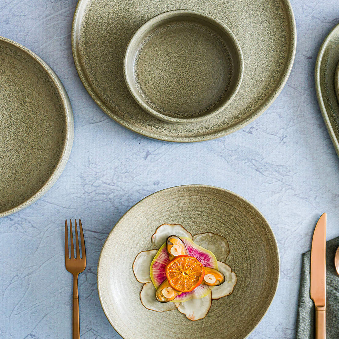 Descubre el equilibrio perfecto entre forma y funcionalidad para tu mesa. Este plato ovalado de 20 × 17 cm, parte de la línea Adelfa Ripple de Bonna, incluye un espacio especialmente diseñado para colocar de manera segura las tazas de espresso o consomé. Su diseño texturizado y acabado mate en tono verde moderno añade un toque contemporáneo y sofisticado, ideal para entornos exigentes como cafeterías, restaurantes boutique, hoteles y cocinas de alto estilo.