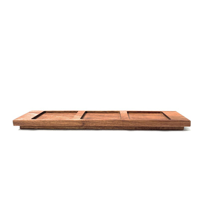 Organiza y presenta tus salsas favoritas con este elegante porta salceros artesanal hecho con madera de parota natural, reconocida por su belleza, resistencia y vetas únicas. Diseñado para alojar tres salceros cuadrados, es ideal para el hogar, restaurantes o eventos.